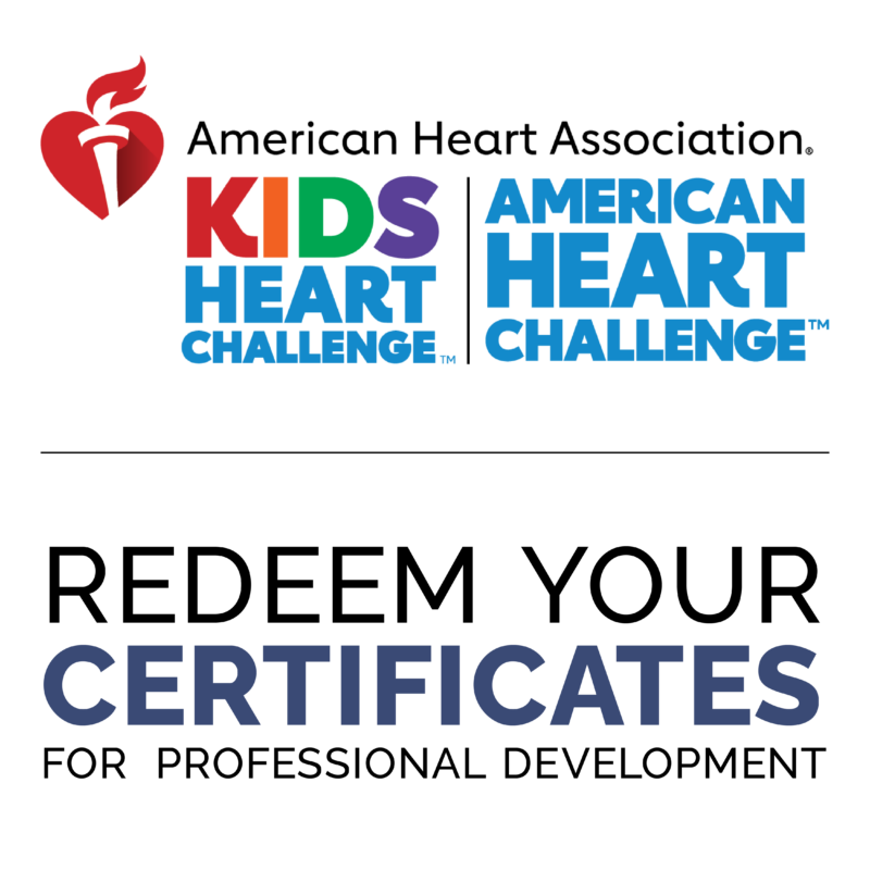 You can now redeem your Kids Heart Challenge and American Heart Challenge certificates for OPEN Professional Development! Choose “Redeem KHC Certificate” when requesting a proposal.